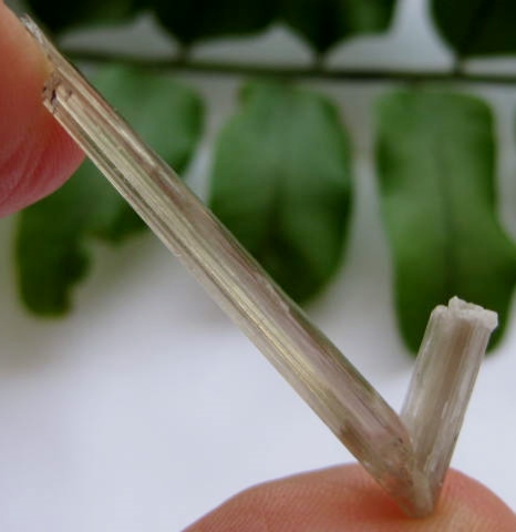 Gem V twin, short end contacted, tall cleaved at tip.