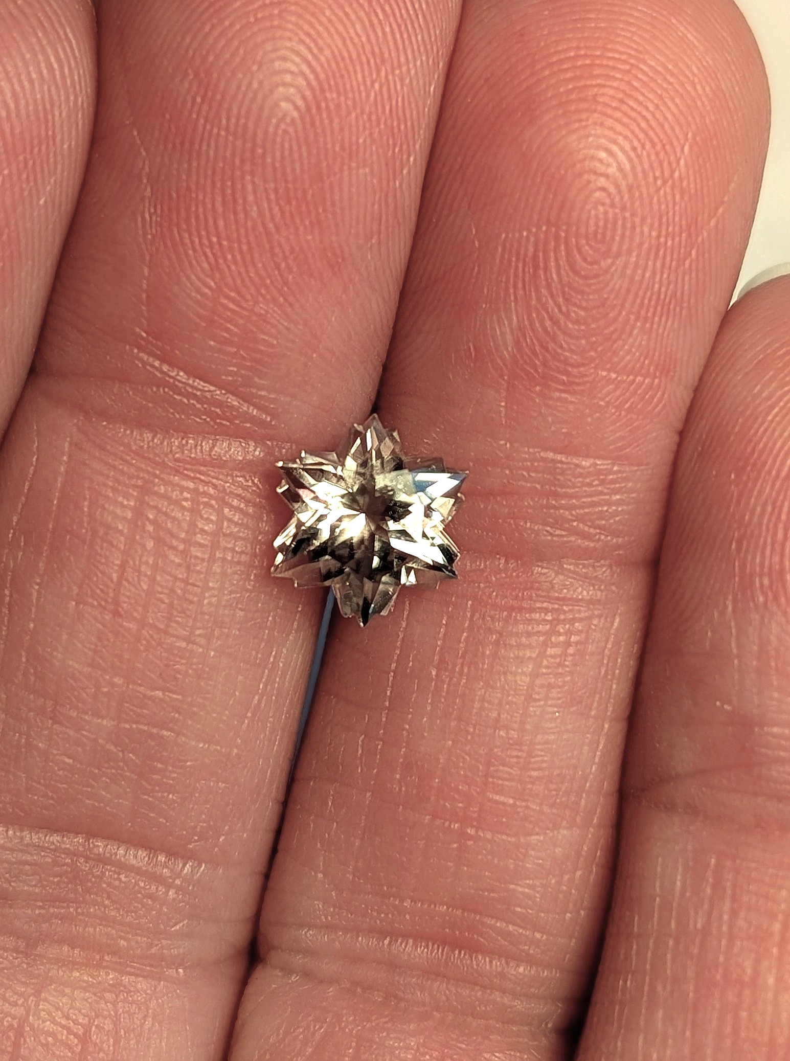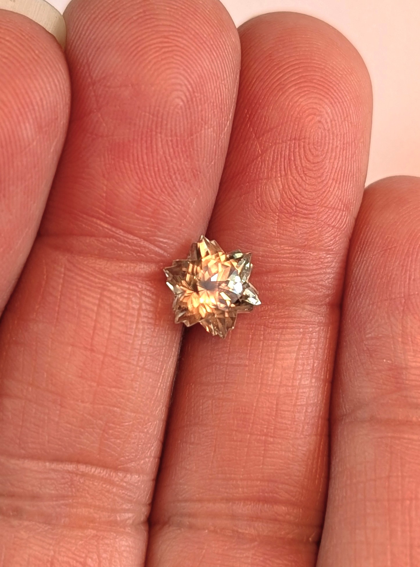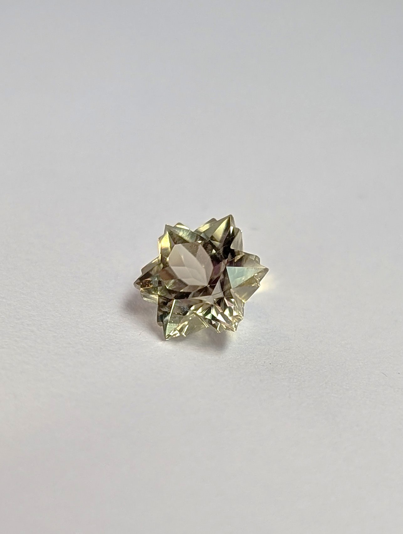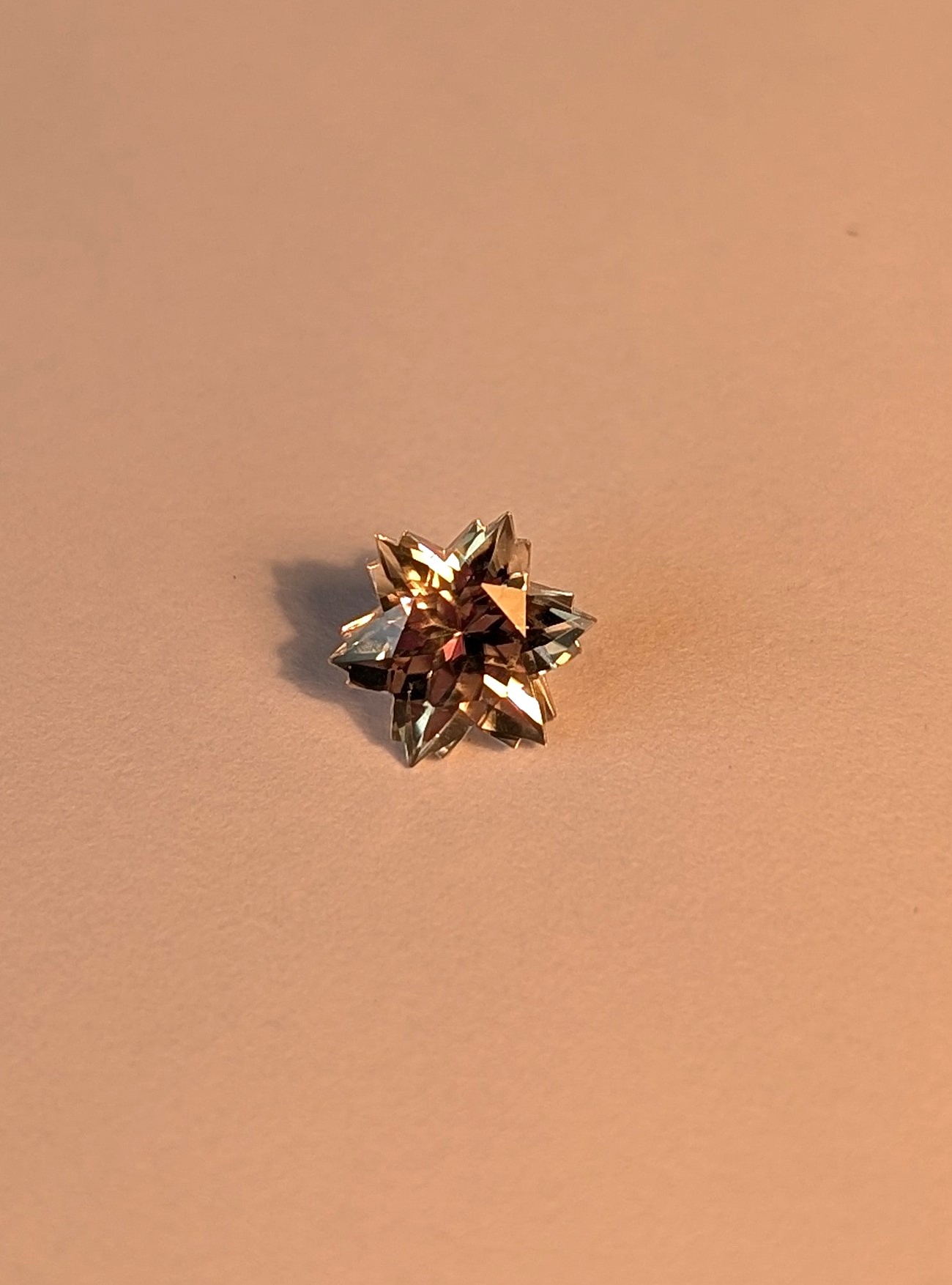 This Snowflake Zultanite® was cut by award winning cutters, brothers Ralph and Rudi Wobito from Ontario, Canada. To learn more how they cut a Snowflake gem go to https://wobito.com/#snowflakes