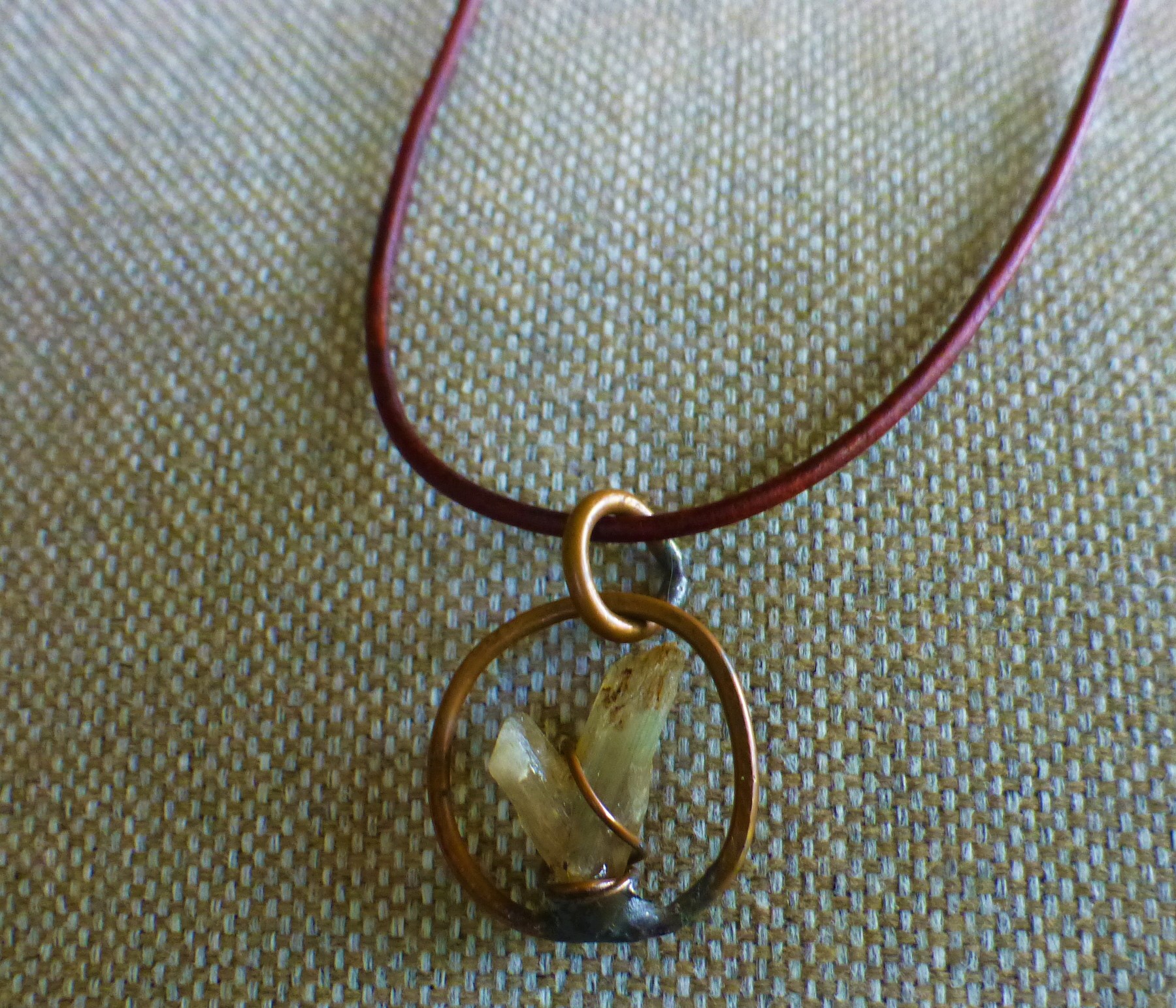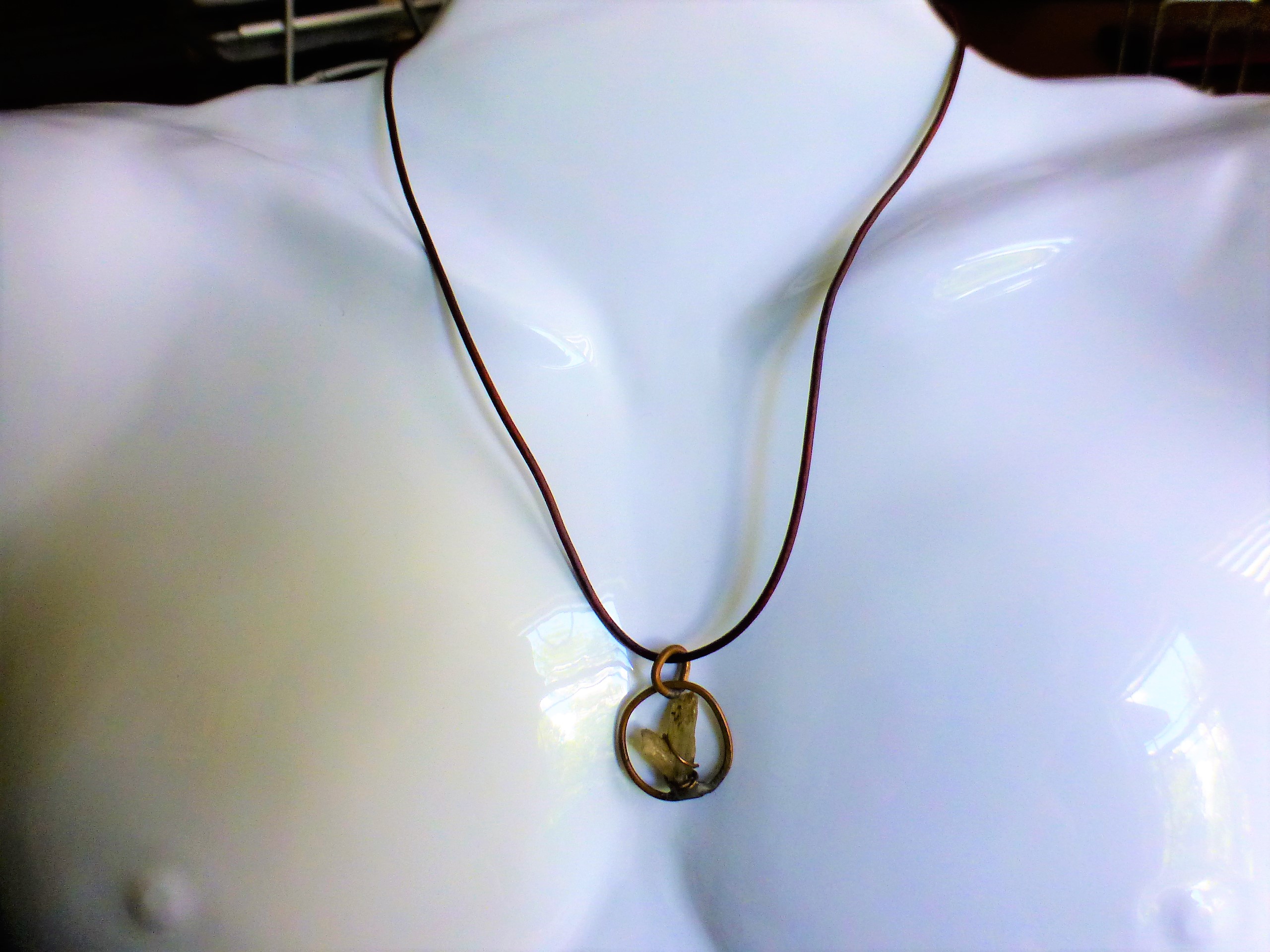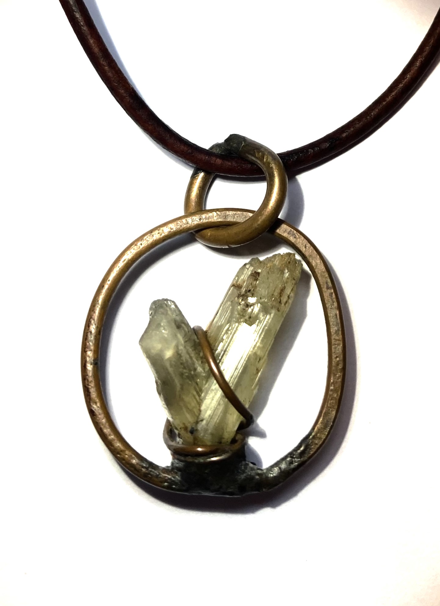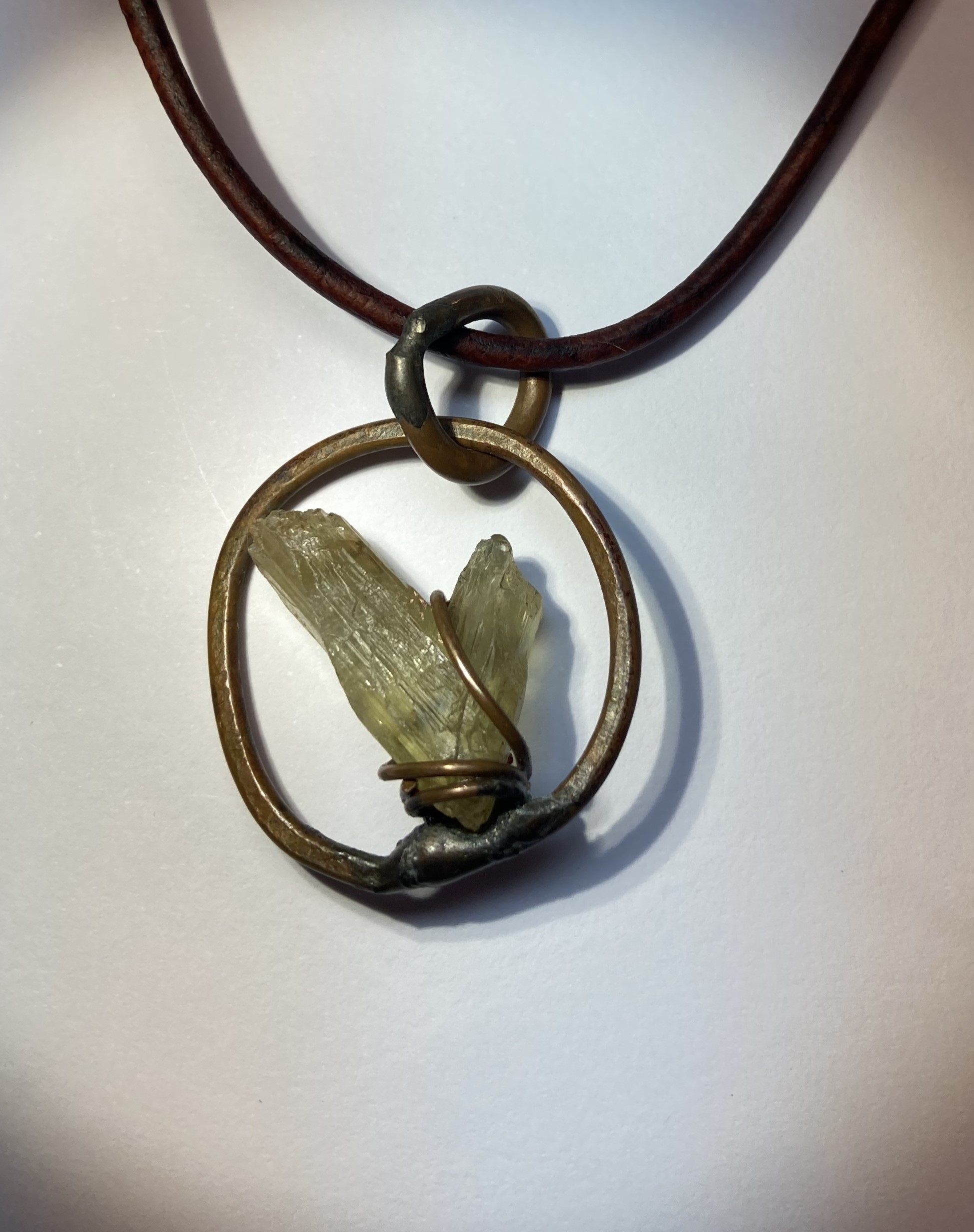 This 22” Leather Necklace is with a pendant that includes one of the rarest mineral specimens of the planet: An all-natural, color changing rock which came out the Zultanite® mine in Turkey. The 11.50 carats V-shaped rock is set in a copper circle, made and designed in the USA, right here in Greenville, SC.