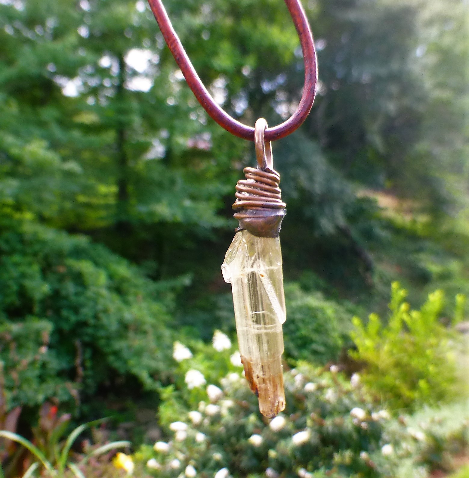 This 22” Leather Necklace is with a pendant that includes one of the rarest mineral specimens of the planet: An all-natural, color changing rock which came out the Zultanite® mine in Turkey. The 14.25 carats Spear-shaped rock is set in copper, made and designed in the USA, right here in Greenville, SC.