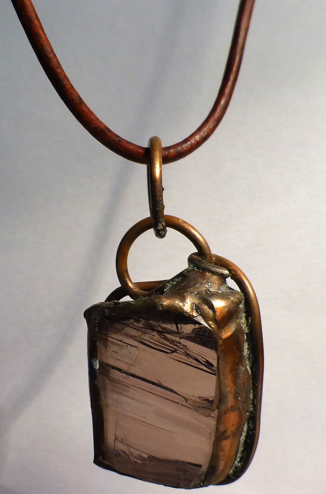 Material: Leather and Copper. The circle pendant outline is about 27mm x 25mm (appr. 1.1” x 1”)The rough mineral is about 27mm x 22mm x 13mm