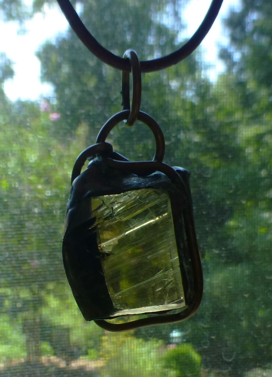 The pendant is made from the same mineral rough the gemstone Zultanite® is cut, with the identical phenomenon: The rock shows different colors under different light sources.