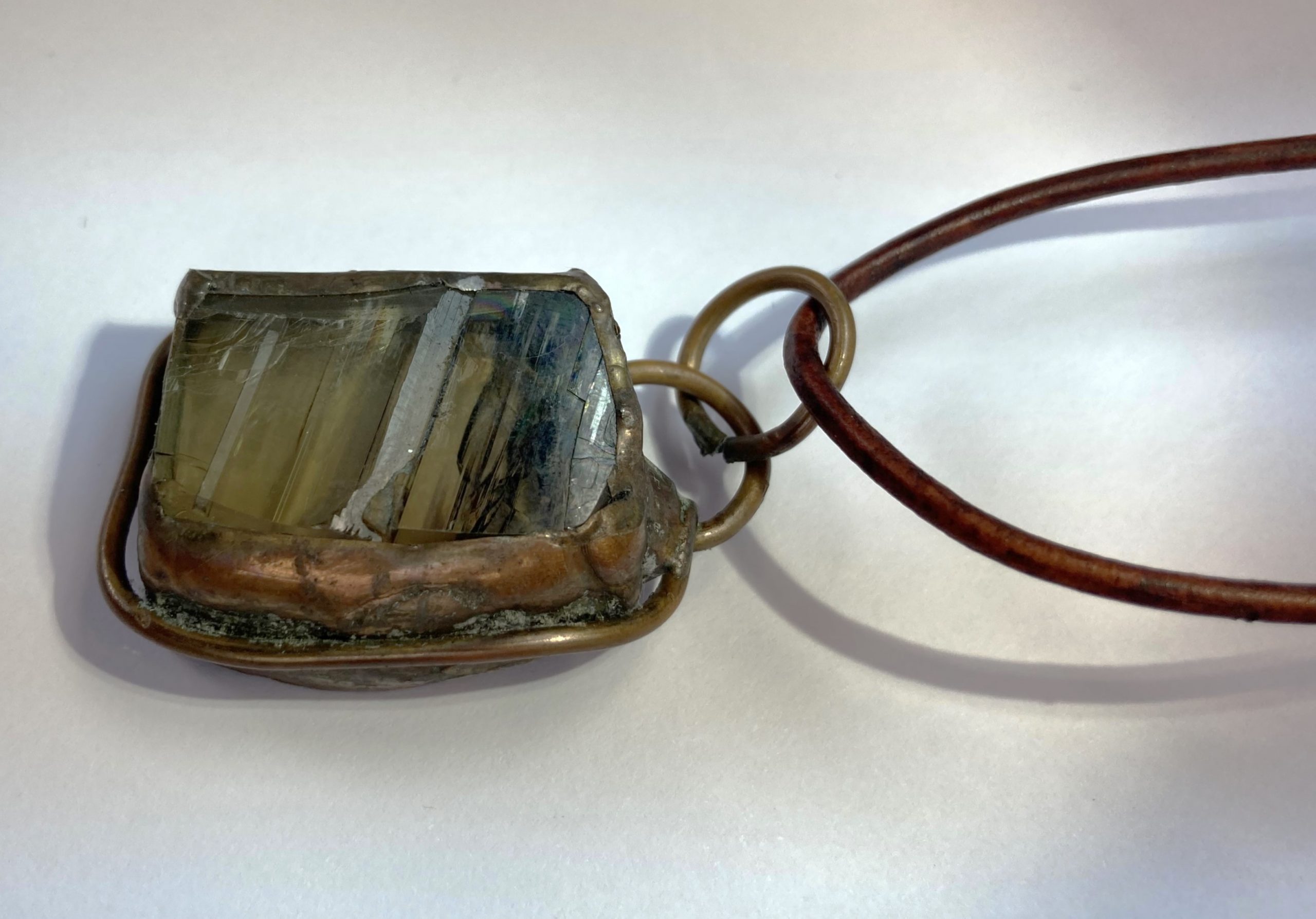 This 22” Leather Necklace is with a pendant that includes one of the rarest mineral specimens of the planet: An all-natural, color changing rock which came out the Zultanite® mine in Turkey. The pendant with the 97.25 carats rough specimen is set in copper, made and designed in the USA, right here in Greenville, SC.