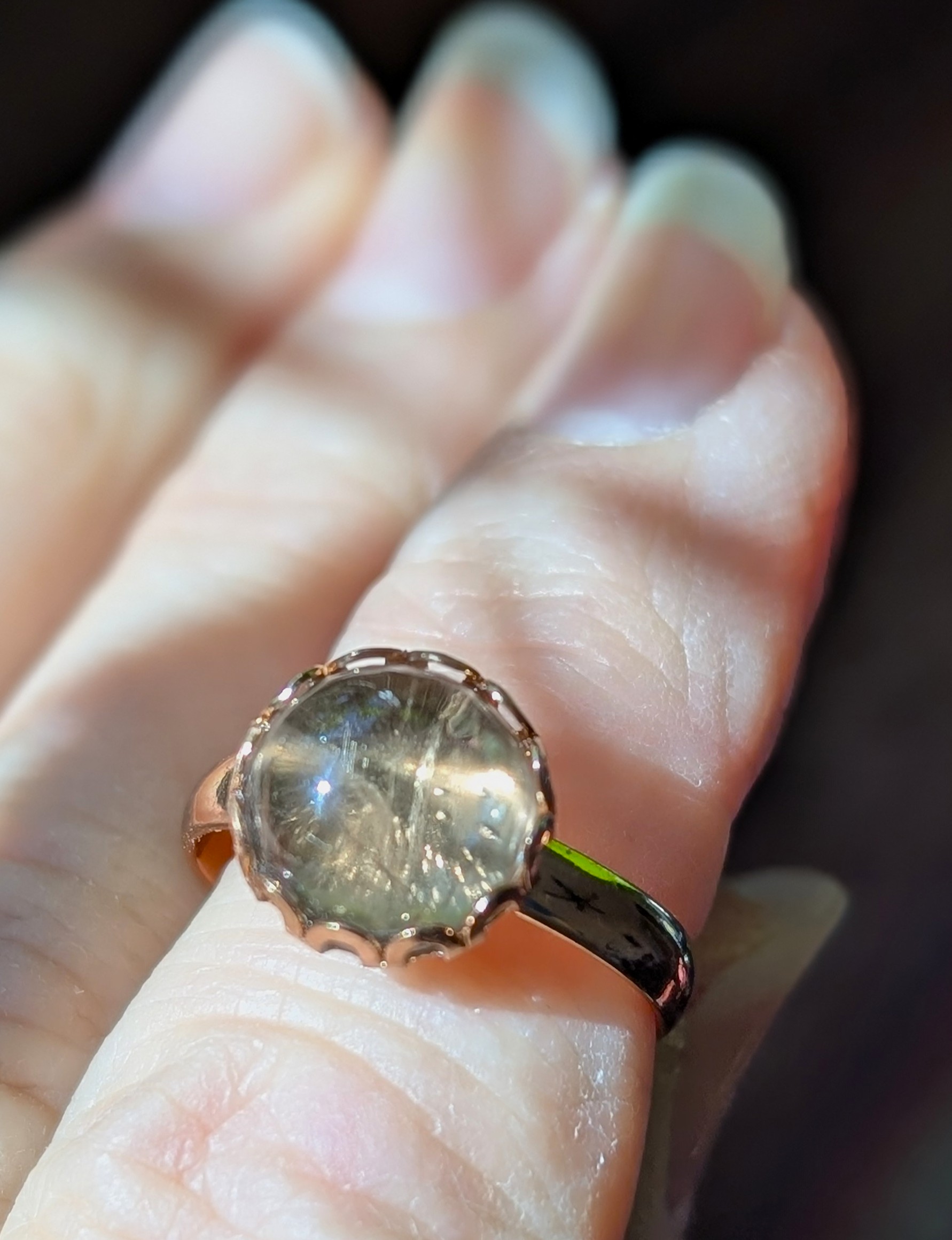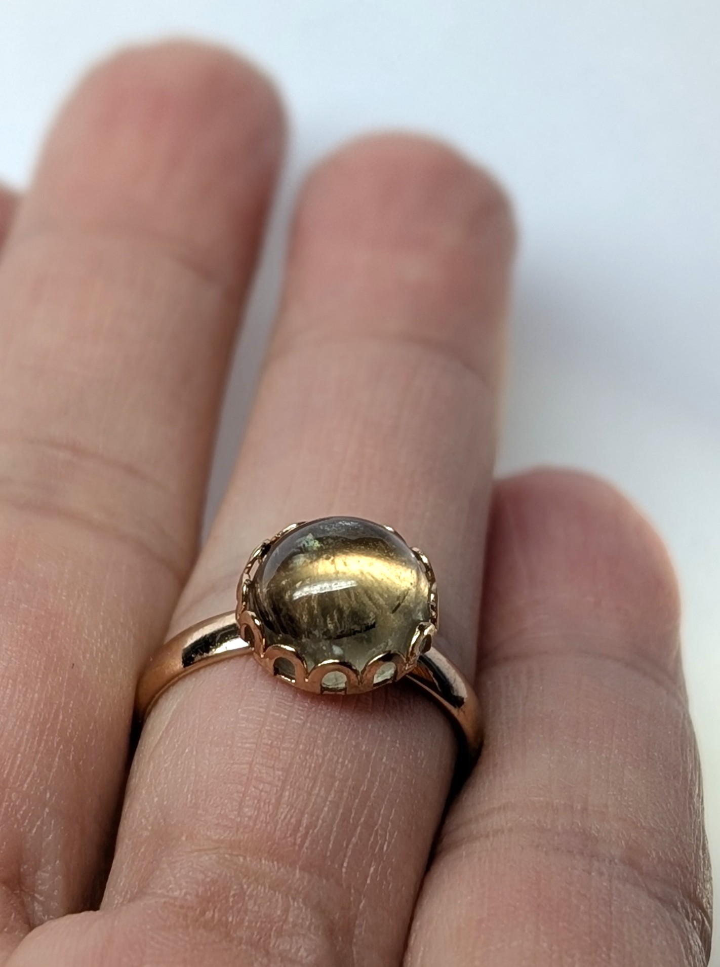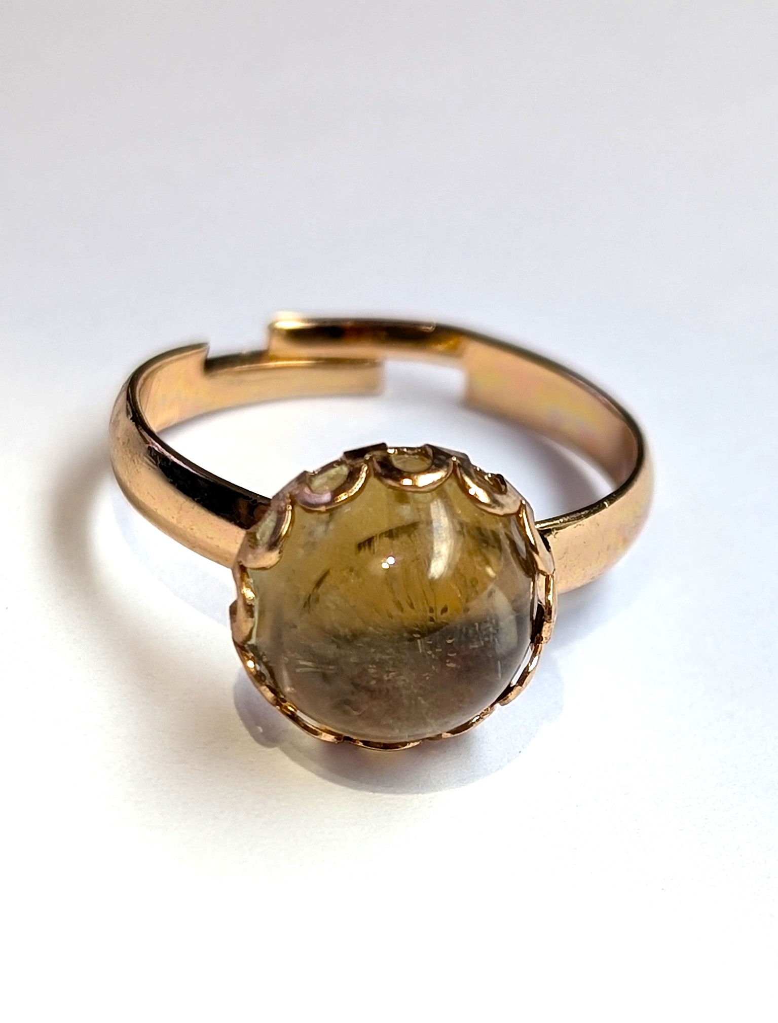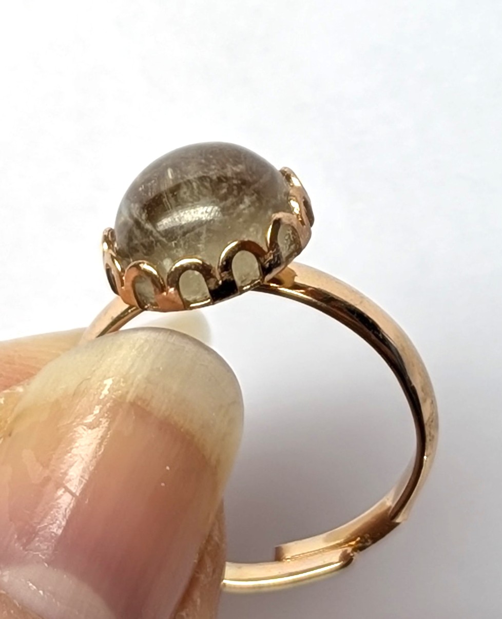 | Rose Gold Colored Brass Ring with 10 mm Round Zultanite Cabochon Cut (II = Intentionally Included)