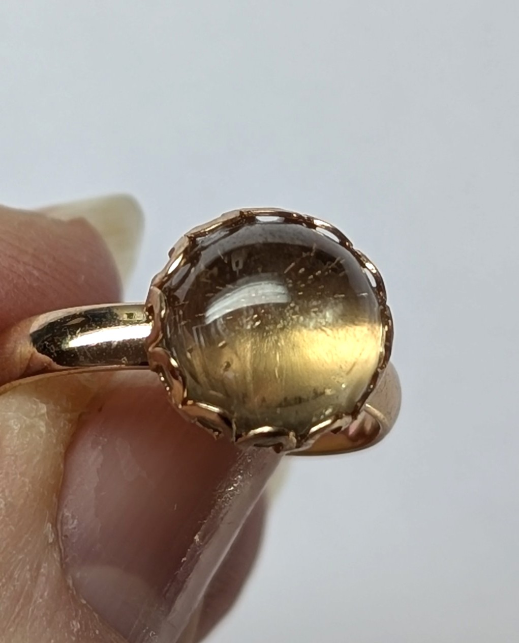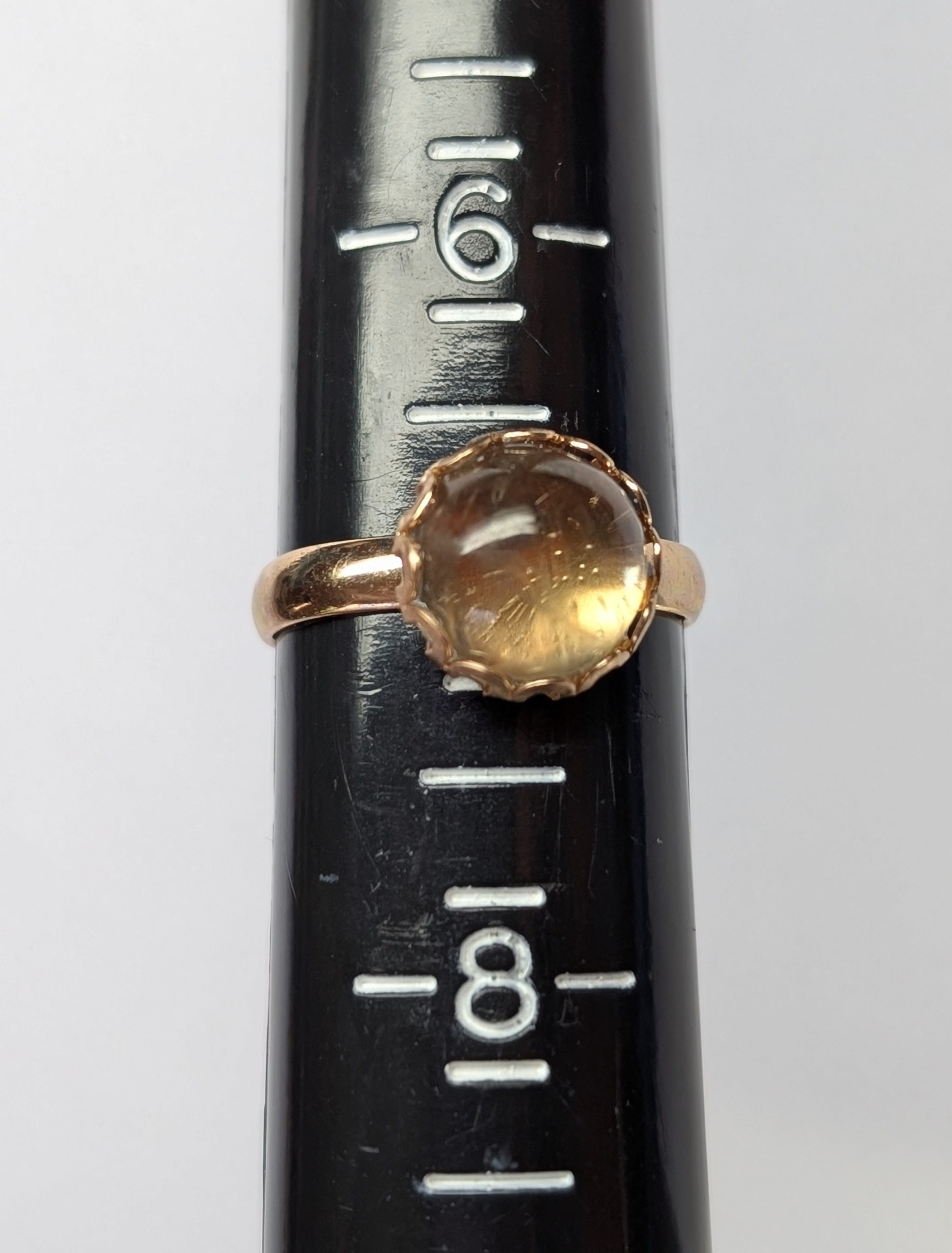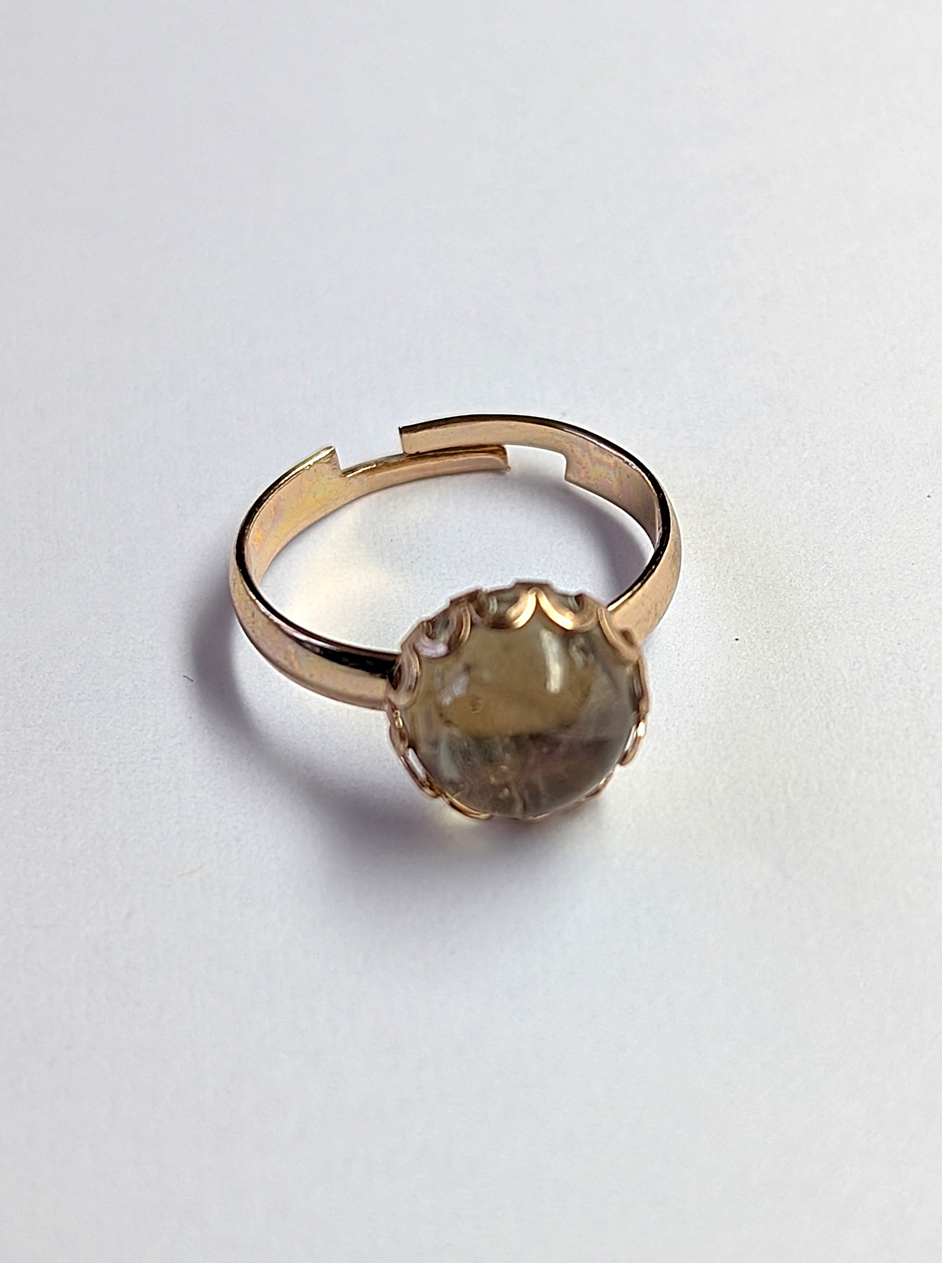 | Rose Gold Colored Brass Ring with 10 mm Round Zultanite Cabochon Cut (II = Intentionally Included)